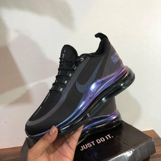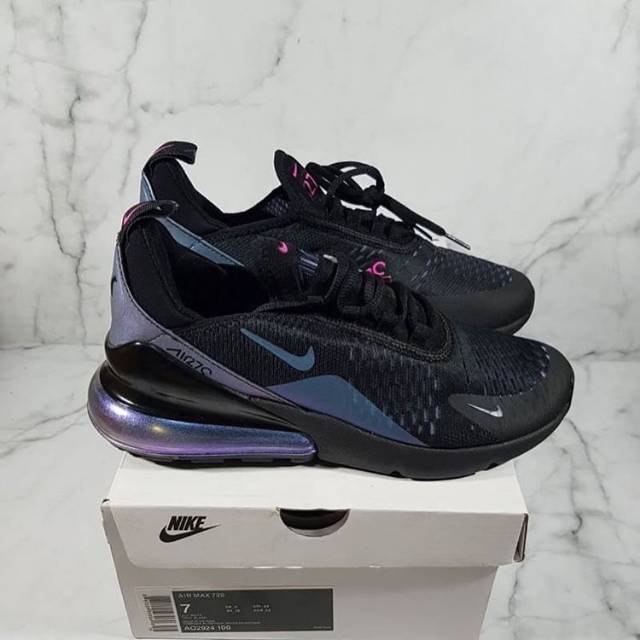 Nike air max 720. While 2017 was all about the future for 2018 nike turned back to the past and delved into the archives for the launch of the air max 270. Each model is detailed with an iridescent theme and according to courtney dailey nike vp of color design she explains it as. Based loosely off traveling into the future and bringing back advanced knowledge into the present the designs stresses a pre worn look with its beige and brown on the upper along with an oxidized air unit and react sole made with tint sulfur dye.