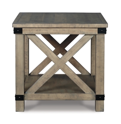 The aldwin farmhouse cocktail table with lift top storage by signature design by ashley at royal furniture in the memphis jackson southaven birmingham tuscaloosa area. End and side tables by ashley homestore with a wide variety of styles and materials side tables from ashley homestore are a great option if you need elegance and durability. Metal brackets incorporate an industrial twist. Aldwin rectangular end table.