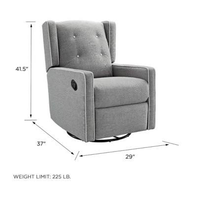 Fully upholstered for supreme comfort this cozy chair with a gentle swivel and glide motion is the perfect backdrop to feed soothe or bond with baby.