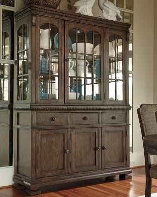 Warm finish exudes an earthy rustic feel. Dining room china width. Aside from being fully a games and coffee table then you might also utilize this ashley dining room chairs ashley buffet and china to become the ashley furniture credenza on your sofas. Or do the opposite by tucking away tablecloths placemats flower vases extra plates and large serveware out of sight into a sleek buffet or piece of bar furniture.