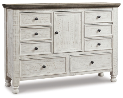 Inspired by american farmhouse craftsmanship but with an elevated sensibility the havalance 4 piece bedroom set blends distinctive details such as turned post accents raised panels and a tall mansion style headboard with great presence for a substantial look that feels right at home. Distressed two tone treatment blends a weathered gray with vintage white for an utterly charming effect. Signature design by ashley havalance with its richly rustic finish and textural mix this havalance collection goes to town on modern farmhouse style. Direct from the manufacturer.