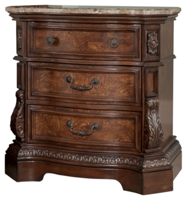 Paired by serpentine shaped night stand dresser chest bedroom mirror or upholstered bench this ledelle collection will look extravagant in your bedroom. Three smooth gliding drawers generously accommodate bedside essentials. Technical features for ashley furniture signature design by ashley ledelle brown three drawer night stand ledelle nightstand is a masterful achievement inspired by the grandeur and grace of european tradition. Mattress and foundation box spring sold separately.