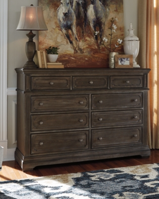 A timeless classic look with enduring grace. Drawers smoothly glide out to provide you with an abundance of storage space. Drawers smoothly glide out to provide you with an abundance of storage space. The mikalene dresser and mirror set transforms traditional heirloom furniture in a stunning way.