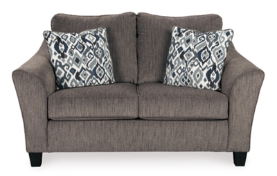 Shop for nemoli slate loveseat starting at 369 99 at our furniture store located at 1880 e. The nemoli slate loveseat from ashley furniture sets the scene for a modern space full of casual flair. The nemoli loveseat sets the scene for a modern space full of casual flair. The on trend slate colored upholstery offers a perfect background for the four decorative pillows to pop with beauty.