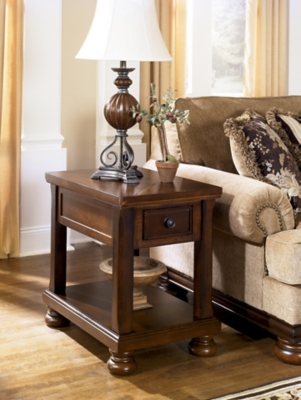 Ashley porter chairside end table available at a price that s affordable and free delivery to your home from coleman furniture. T6973 in by ashley furniture in carson city nv porter chairside end table. Porter chairside end table by signature design by ashley furniture in end tables. Add that finishing touch of traditional style to your space with the porter 2 piece chairside end table set.