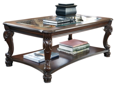 Signature design by ashley norcastle traditional round end table dark brown 4 5 out of 5 stars 139. Their fanciful pattern is echoed in the carvings and curves of the richly stained legs and stretchers. Signature design by ashley nestor glass top oval coffee table medium brown 4 5 out of 5 stars 611. The acanthus leaf detailing and scrollwork are simply divine handsomely crafted.