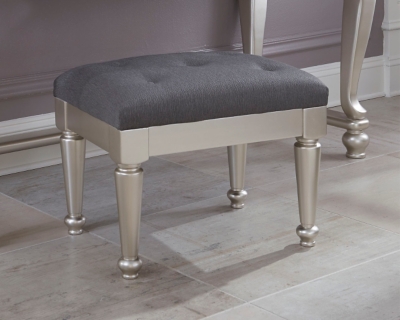 So pampering the plushly cushioned seat with button tufting adds a decadent touch. Framed drawer fronts and a plushly upholstered stool add refinement while the tri panel mirror lends a classic touch. Explore vanity lighting for additional ways to elevate your space and make dressing up something fun every single day. Ashley furniture signature design zarollina vanity stool silver pearl base and upholstered faux gator seat by signature design by ashley 4 3 out of 5 stars 161 ratings.