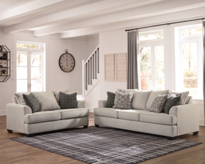 Flared arms and neutral hue lend to transitional appeal. Free shipping nationwide free in home setup on thousands of items. Shop for the velletri pewter sofa by ashley at luna furniture. Throw pillows continue the charm with gray infused scroll and plaid patterns.