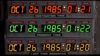 Back to the future time machine clock. Then touch the alarm clock icon to activate the alarm. 68 79kb alarm clocks clock face digital clock time png size. It features the dashboard that controls the time traveling through three dates. This webapp was build mainly using createjs a very powerful suite of javascript libraries for easy programming with html5.